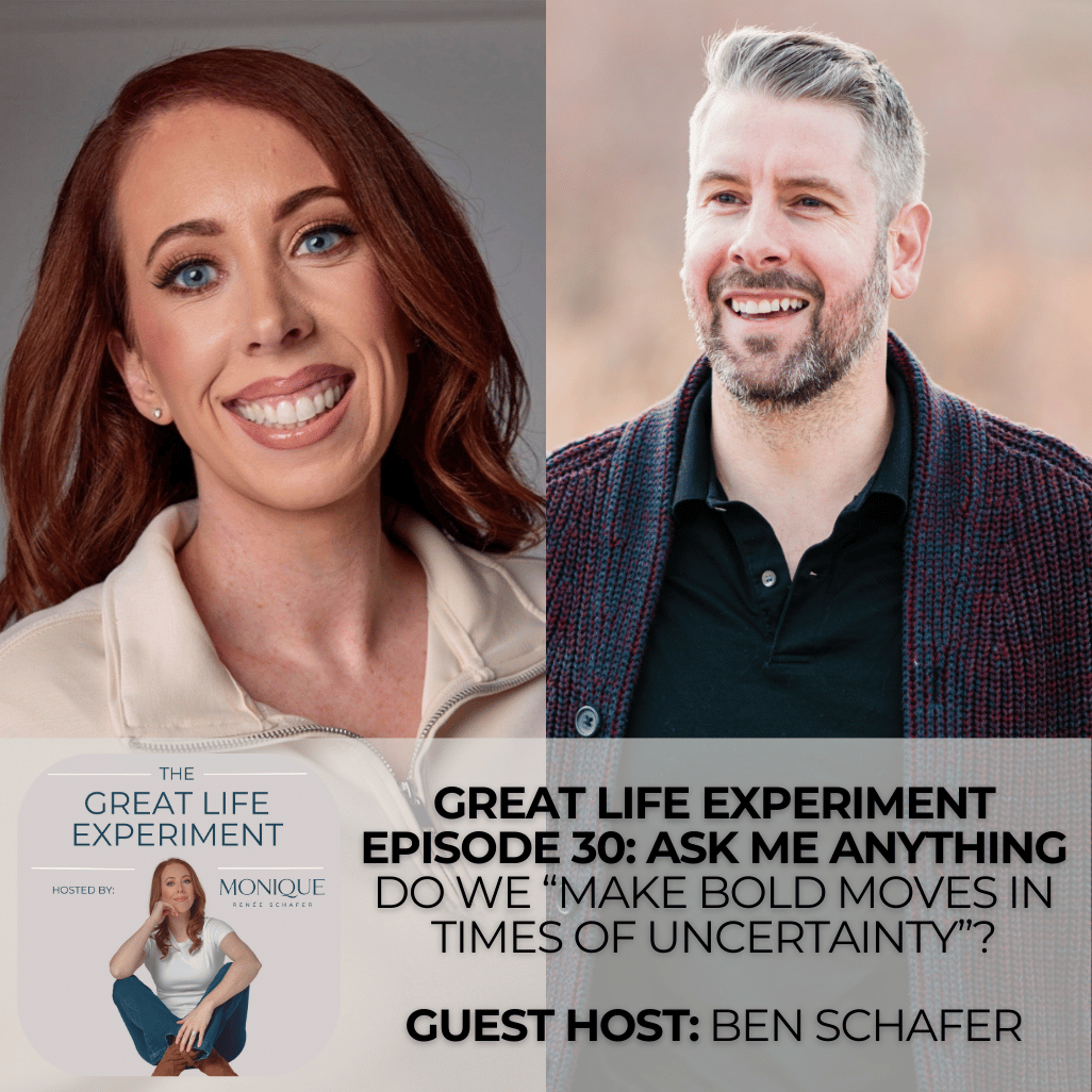 In this 'Ask Monique' episode, Ben Schafer (Rev Op Leader and husband) joins Monique (Product Leader and Advisor) to explore a listener's questions: do we make bold moves in uncertain times? And how do you, as a leader, show up with all this uncertainty?